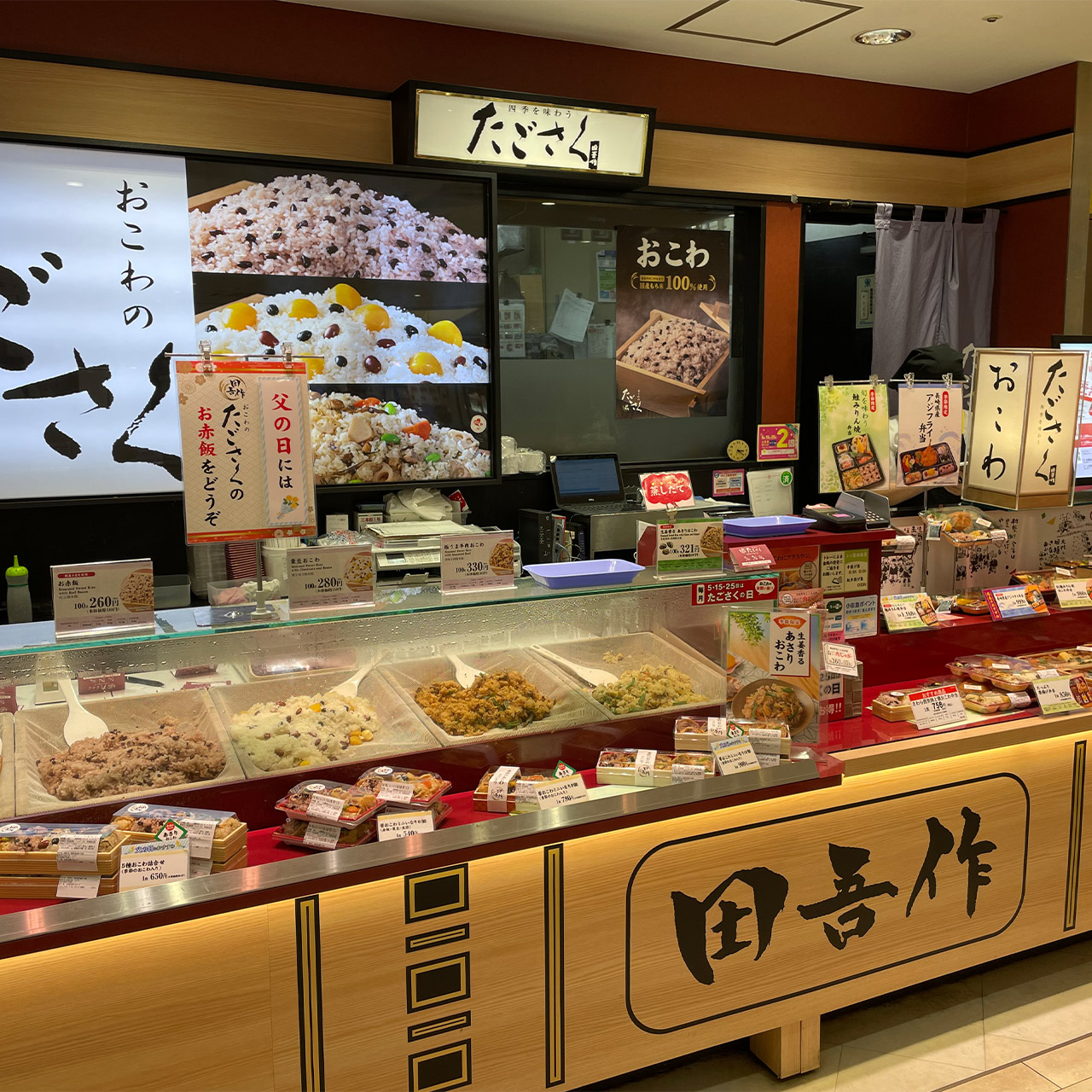お弁当、おこわ、いなり等を取扱う「総合米飯店」。おこわは出来たての定番おこわから、期間限定のおこわまで。お弁当は毎日のお食事から、特別な日のご予約弁当まで、バラエティに富んだ商品を取り揃えて皆さまのお越しをお待ちしております。