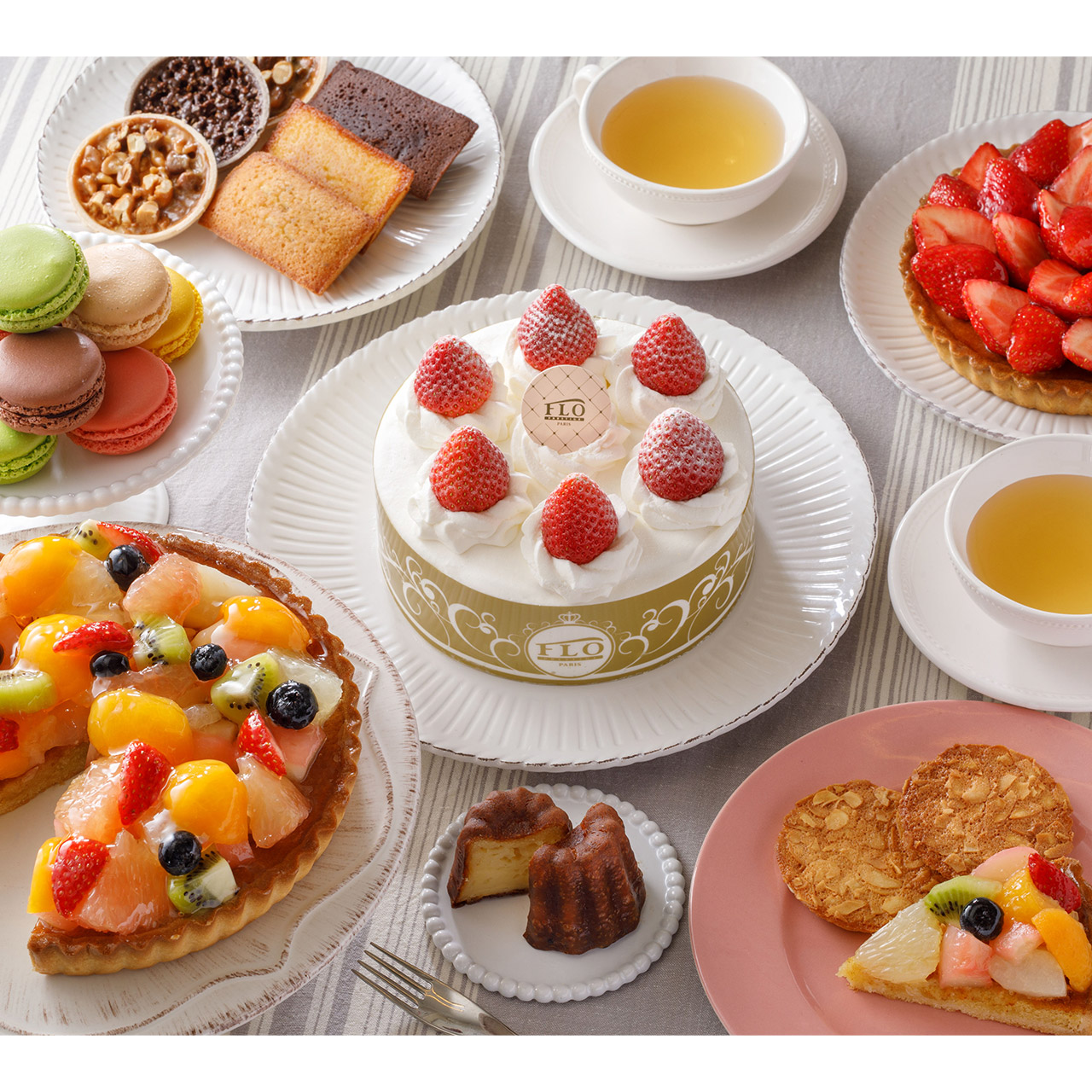 1866年にフランスのパリに誕生した「FLO」は、より多くのお客様にお気軽に、美味しいフランスの味を楽しんでいただきたいという思いを独自のスタイルで展開しています。店内厨房で焼き上げた、フロオリジナルの焼き立てタルトをお楽しみください。