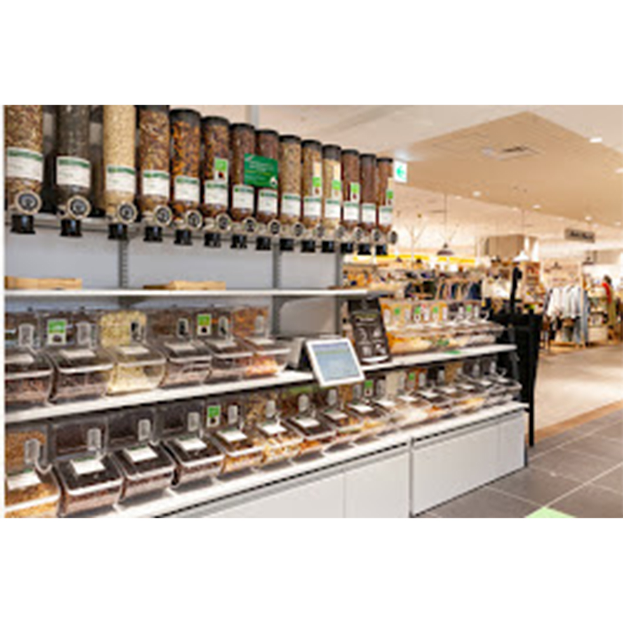店内には有機野菜をはじめ、ヨーロッパから直輸入の新鮮なチーズや、パッケージを見るだけで楽しい海外の調味料やスナックなどを豊富に取り揃えております。ドライフルーツやナッツ、グラノーラなどの人気の量り売りコーナーも充実しています。