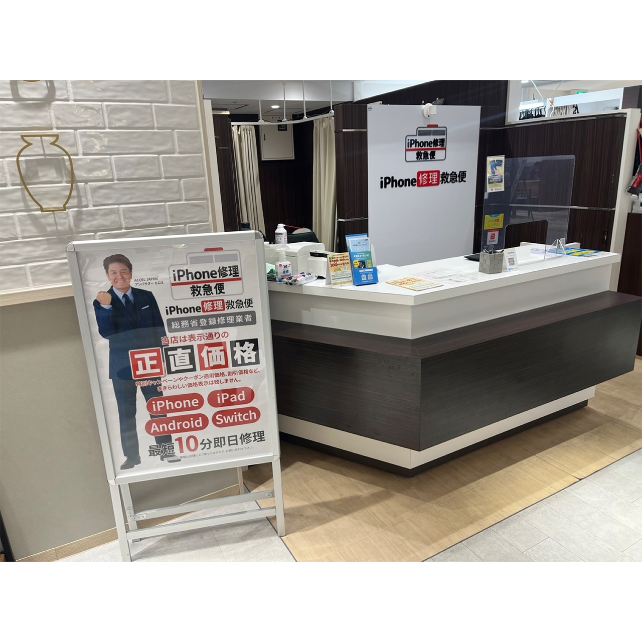 当店はiPhone修理専門店です。ガラス割れや液晶不良、バッテリー交換などデータはそのままで即日交換対応が可能です。iPadやAndroid、switchの修理も受付しております。通勤通学時やショッピングやお食事の合間などにお気軽のご利用ください。当店は「総務省登録事業者」です。