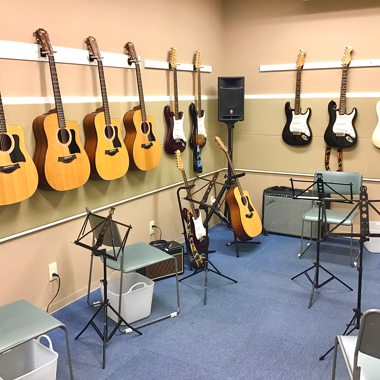 ピアノをはじめ、ヴァイオリン、フルート、サックス、各種ギターなどさまざまな楽器を気軽に学べます。
